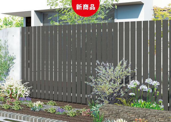 実用新案取得済み 受注生産人気の縦格子にも木目調で耐候性のある人工木材を使用し製品化。従来製品に比べ低価格のラインアップです。